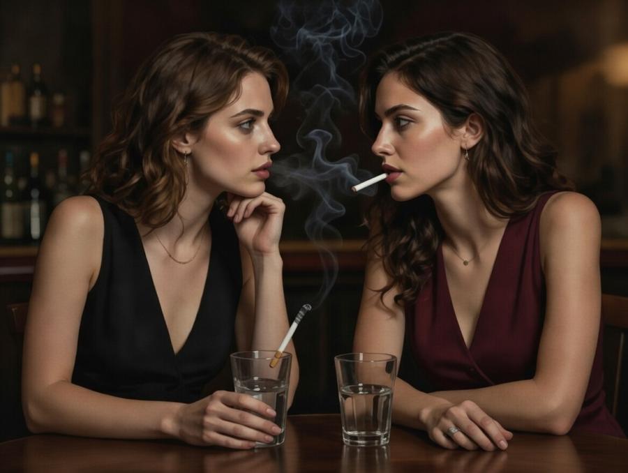 —Basta —dije, abriendo los ojos de golpe. El bar seguía ahí, con su música y su humo, pero todo parecía distorsionado, como si hubiera estado bajo el agua. Mis pezones dolían, erectos contra la tela del vestido, y el calor entre mis muslos era casi insoportable.