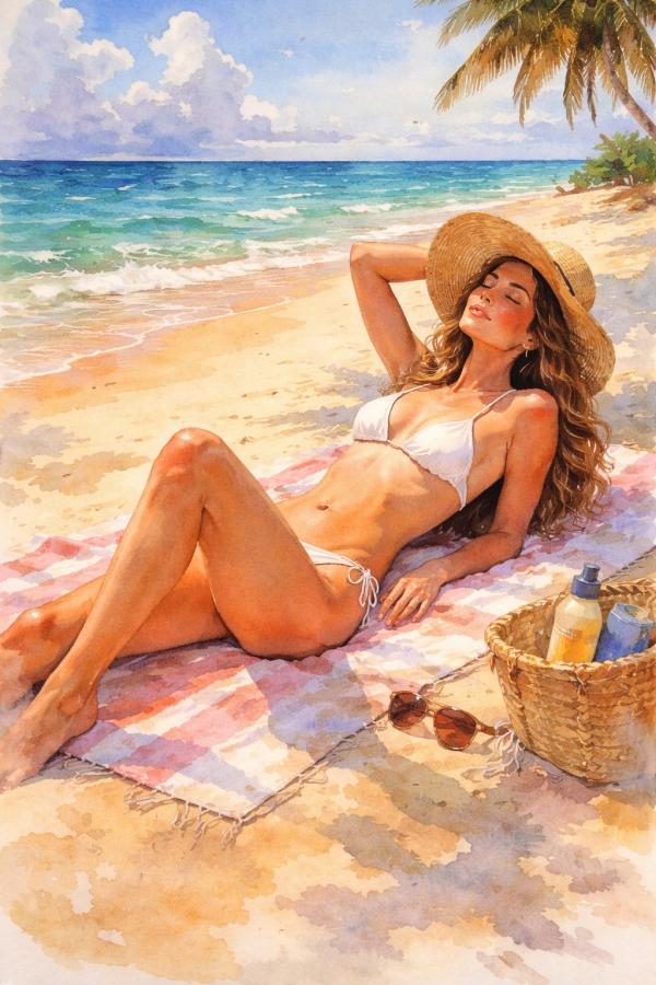 "Cogí el bote del bronceador y me lo puse por los hombros y brazos, seguidamente por el vientre y las piernas."
