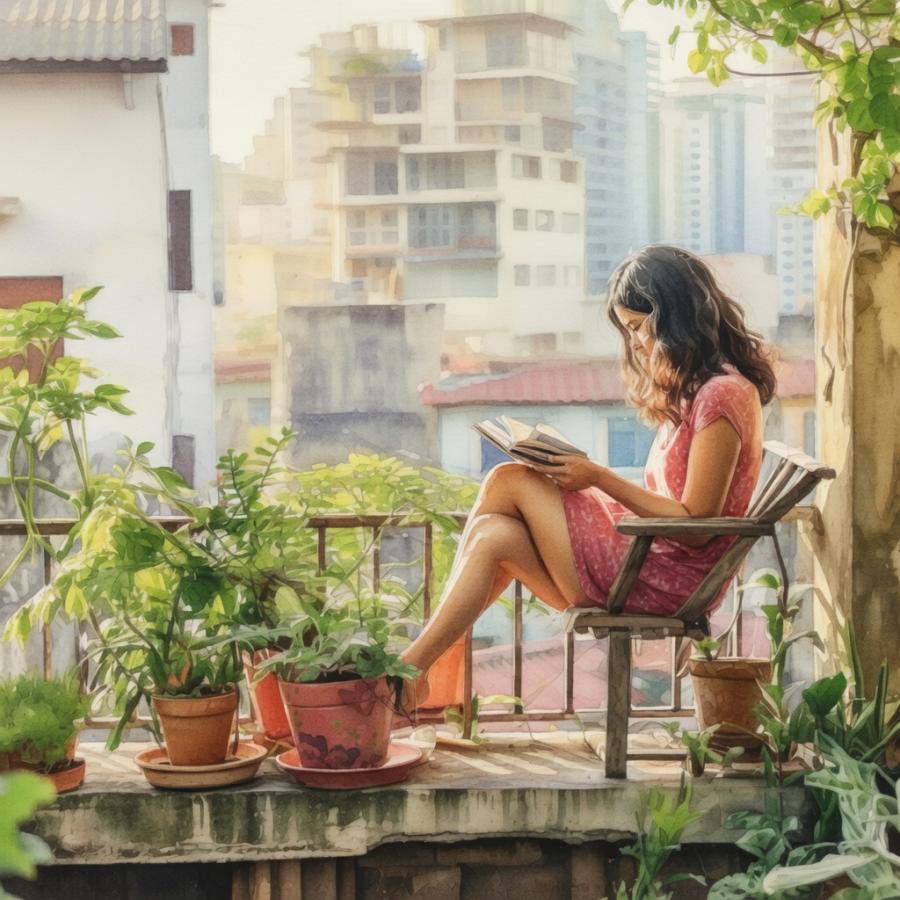 Terminó de regar y se sentó en una silla a leer un libro, el sol ya calentaba.